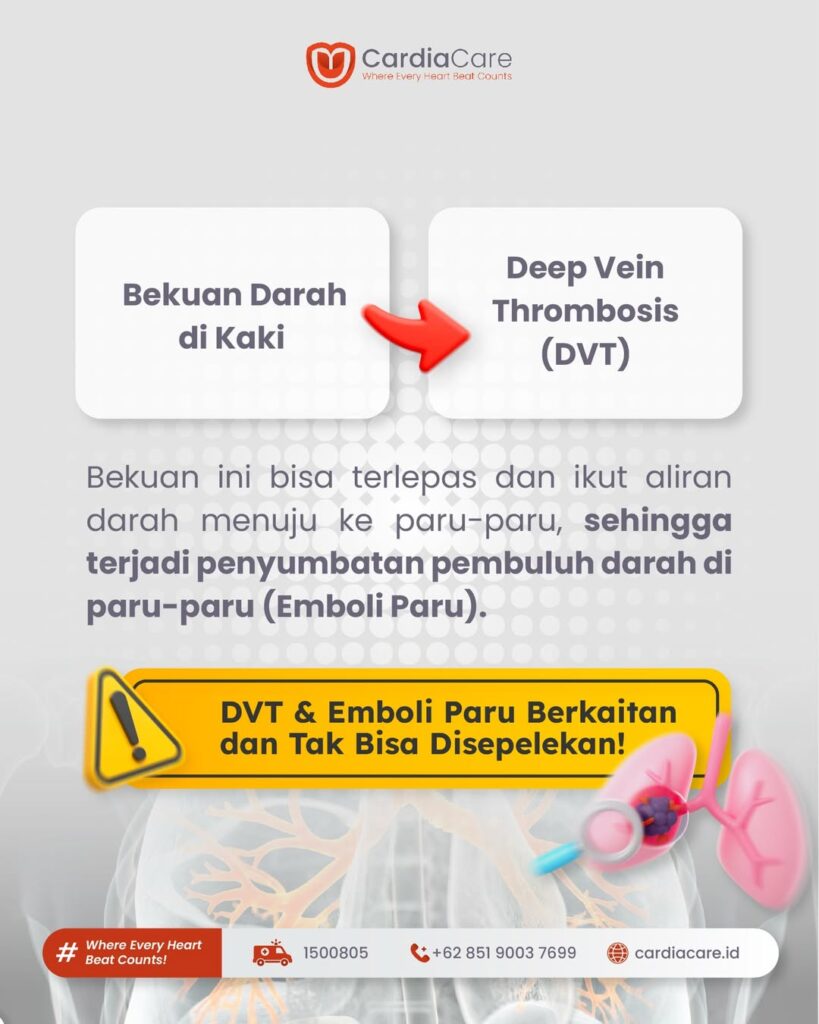 Bekuan darah di kaki bukan sekadar masalah lokal, melainkan kondisi yang dapat berkembang menjadi emboli paru yang mengancam jiwa. Karena gejalanya sering samar, kewaspadaan klinis dan pemeriksaan dini sangat penting, terutama pada individu dengan faktor risiko.