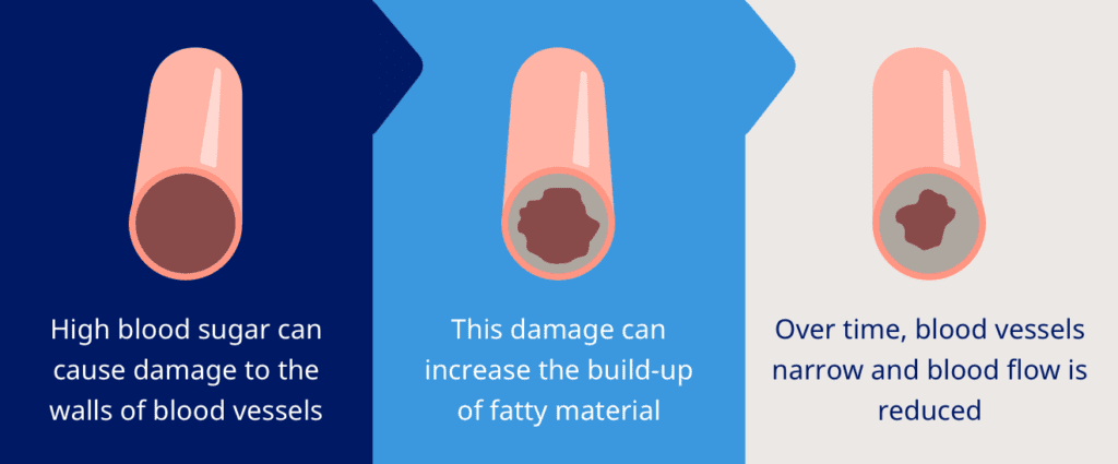 Gula darah tinggi dalam jangka panjang tidak hanya mempercepat pembentukan sumbatan, tetapi juga membuat sumbatan yang terbentuk menjadi lebih rapuh dan berbahaya.
