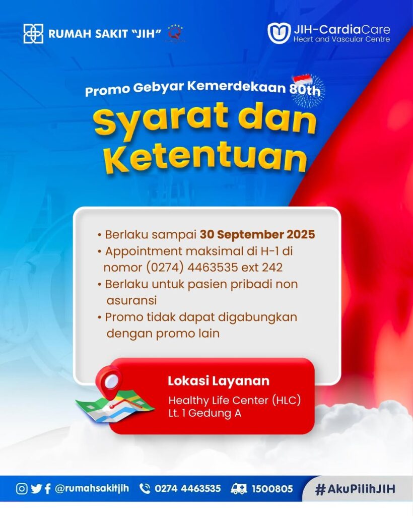 Jangan tunggu gejala datang! Segera manfaatkan promo pemeriksaan jantung ini dan jaga kesehatan jantung Anda serta keluarga.