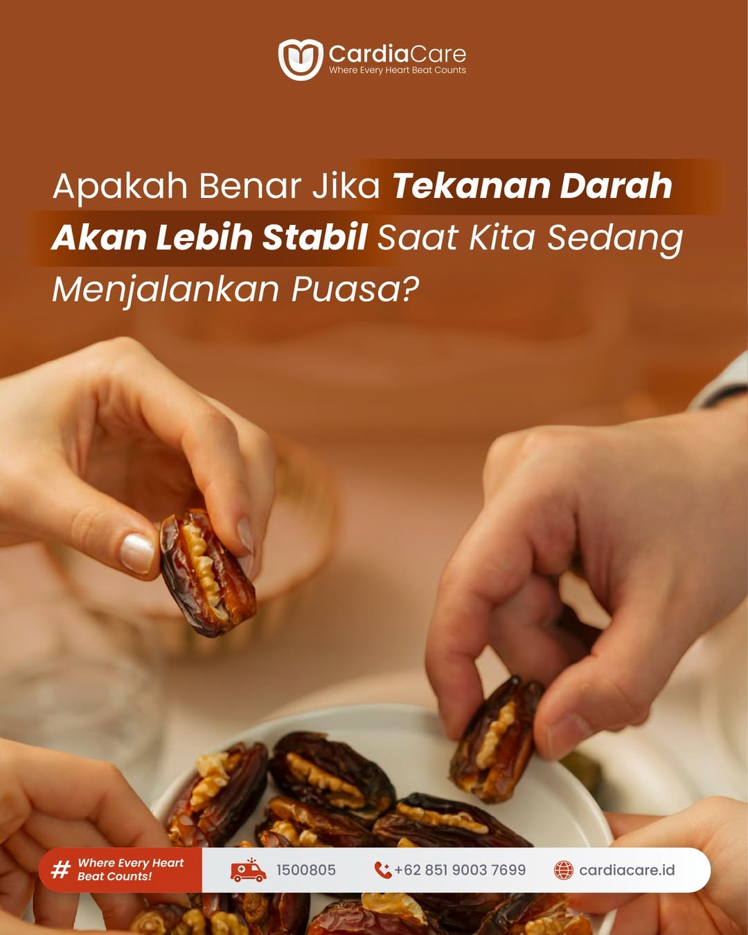 Jika memiliki riwayat hipertensi atau penyakit jantung, konsultasikan kondisi Anda ke dokter kami agar puasa tetap aman dan nyaman. Informasi lebih lanjut: